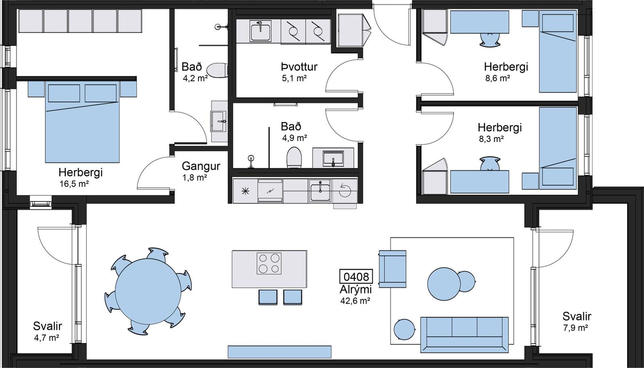 Birt heildarstærð séreignar er 122,5 fm.