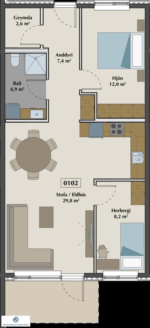 Fasteignasala Suðurlands (s 483 3424) kynnir: Sambyggð 20, íbúð 0102, Þorlákshöfn. Ný, falleg, 74,4m2 miðjuíbúð á jarðhæð með 2 stórum svefnherbergjum og góðri geymslu innan eignar. Íbúðin er með sér inngang. Úr stofunni er utangengt á góðan, hellulagðan, sérafnotaflöt sem snýr í vestur.