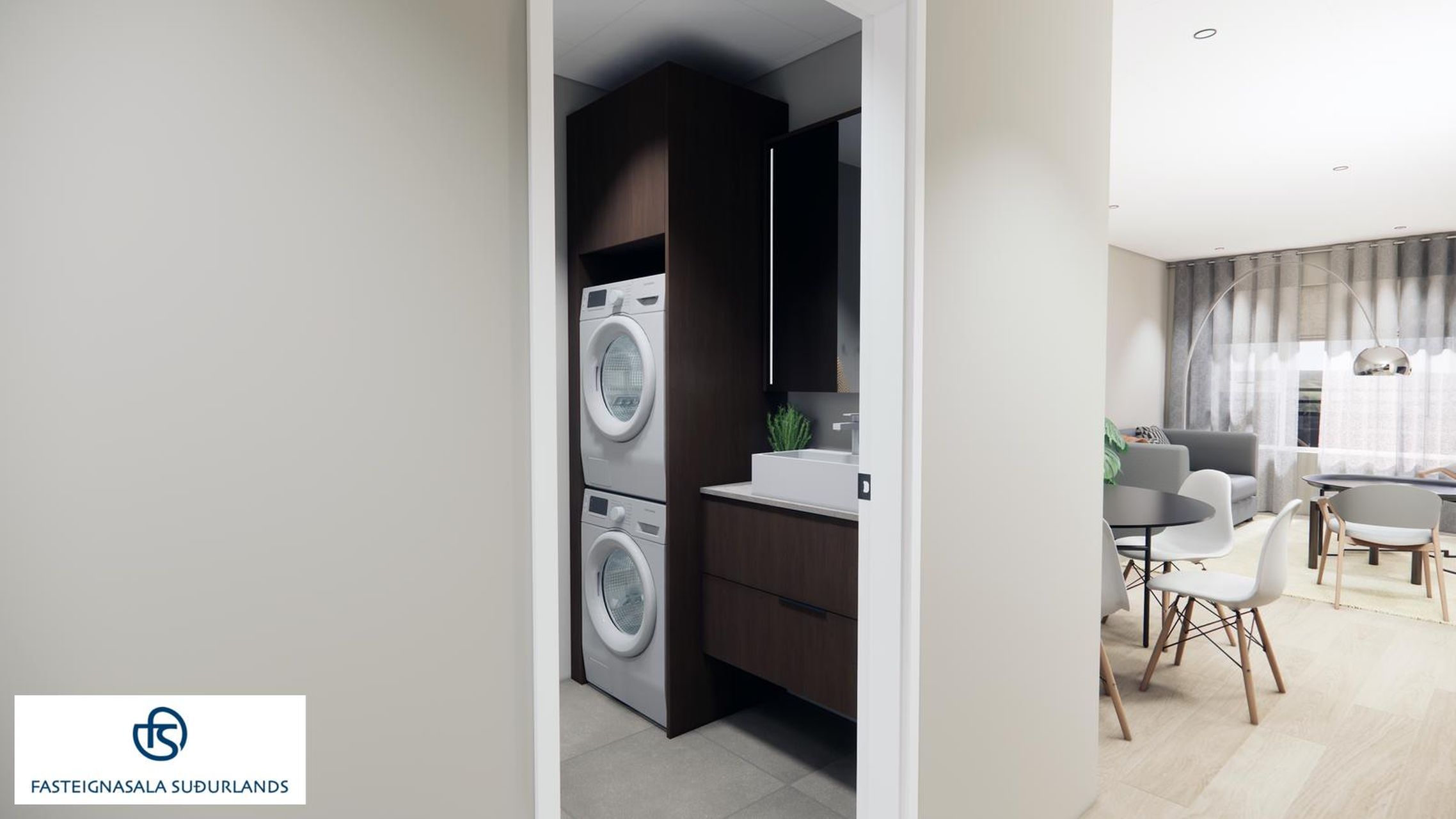 * Gert er ráð fyrir þvottavél og þurrkara (barkalausum) á baðherberginu á snyrtilegan hátt.