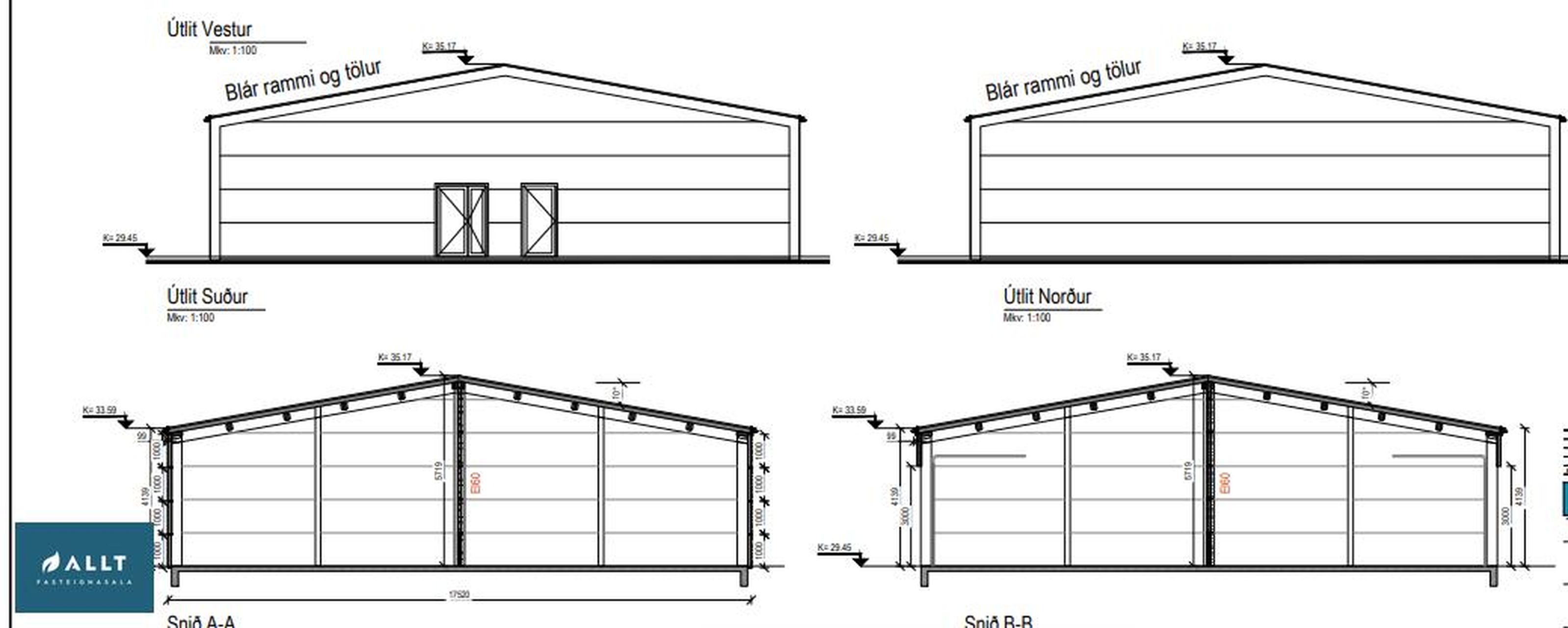 Raflagnir: Greinatafla staðsett við gönguhurð. Vinnuljós og rofi í hverju geymslubili. Vinnuljós er staðsett fyrir ofan greinatöflu. Mótor fyrir loftræstingu mun virkjast með ljósarofa. Tvöfaldur tengill í töflu. Þriggja fasa tengill neðan greinatöflu. Út-ljós fyrir ofan gönguhurð.
