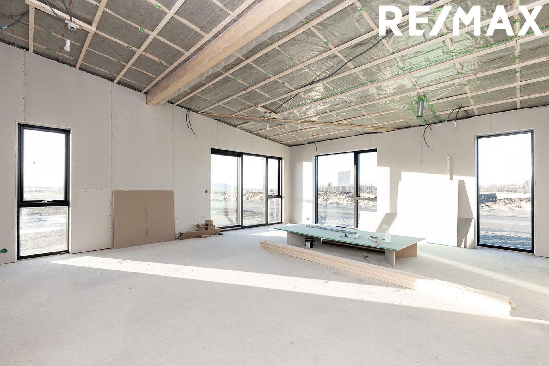 Gluggar og hurðir: Allir gluggar og útihurðir eru úr ál/tré. Tvöfalt verksmiðjugler frá viðurkenndum framleiðanda er í húsinu og flyst ábyrgð þess áfram til kaupenda. Söluaðili er Gluggatækni. Litur að utan er RAL 9005 (svart) og sami litur að innan.
