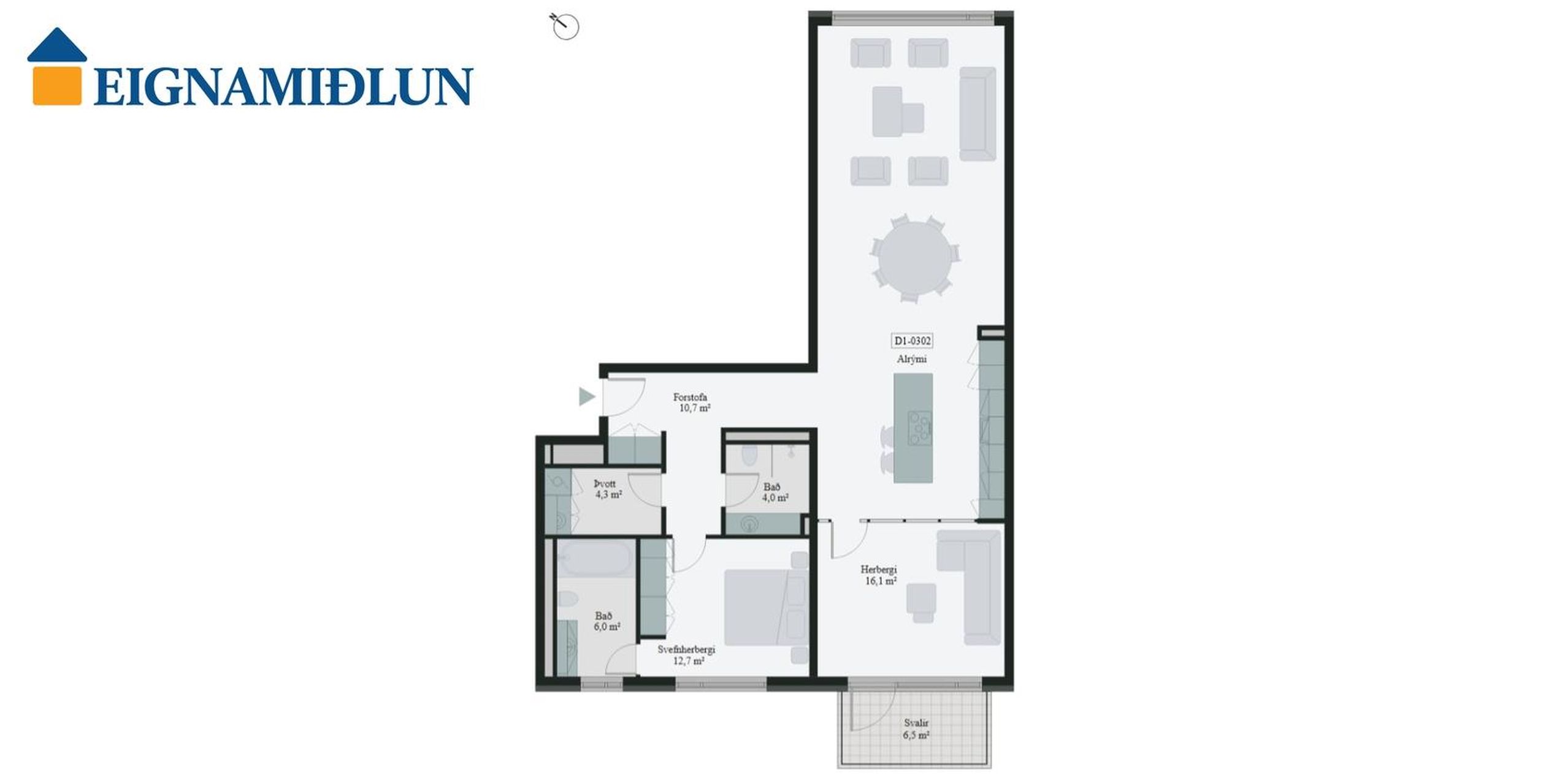 Orkureitur - Suðurlandsbraut 40-302 , íbúð 03-02 er 3 herbergja, 134.8 fm íbúð.