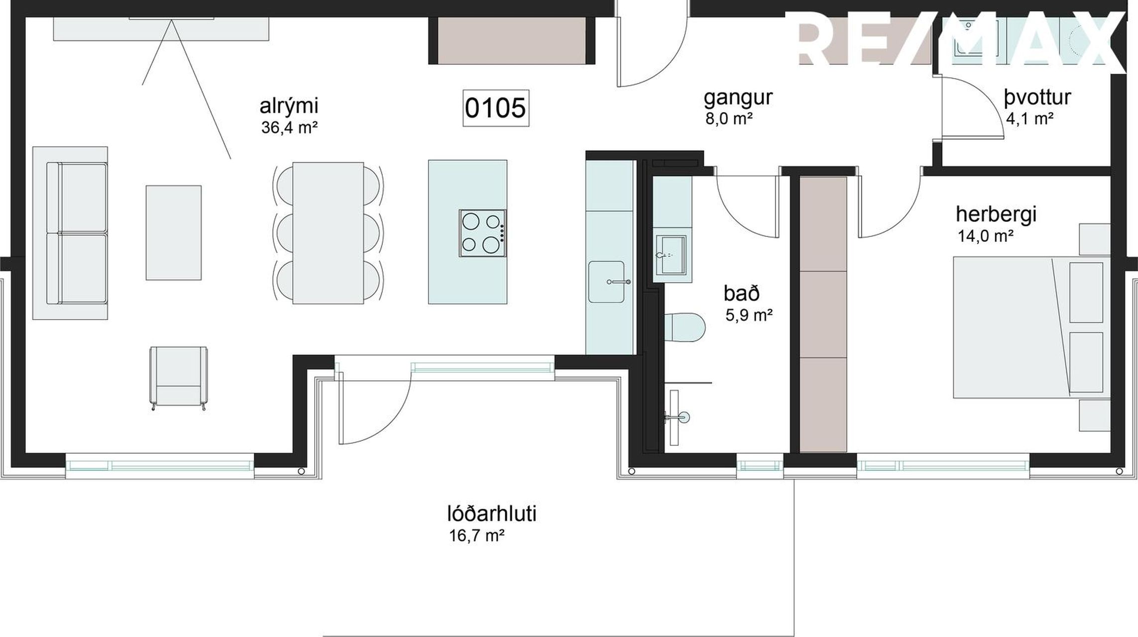 Eignin er tveggja herbergja íbúð á 1. hæð matshlutans 02, merkt 0105, birt stærð 80,3 fm. Eigninni tilheyrir geymsla í kjallara matshlutans 02, merkt 0010, birt stærð 12,6 fm. Eigninni tilheyrir verönd.