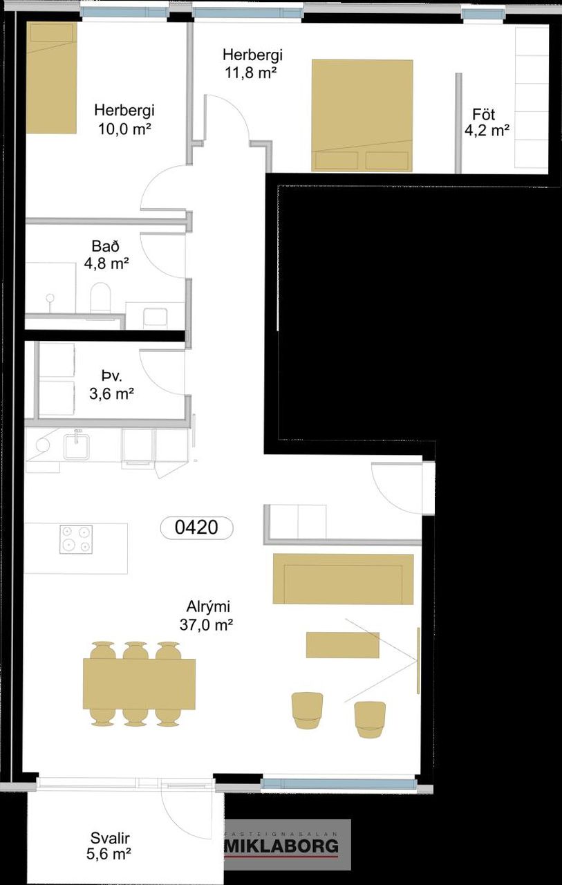 Íbúð 420 er falleg 3ja herbergja íbúð á 4.hæð með yfirbyggðar svalir.