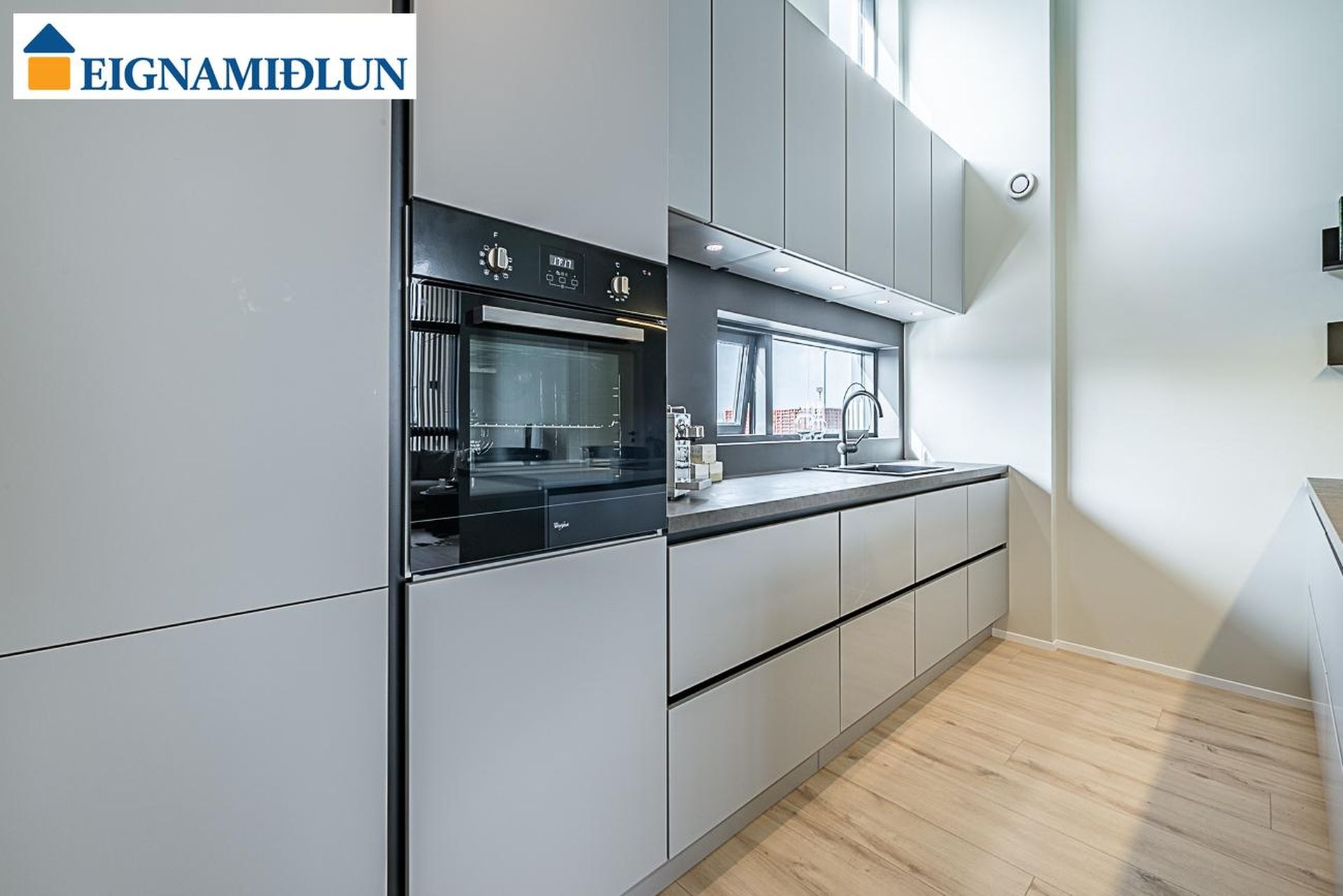 - Eldhústæki verða; blástursofn, spanhelluborð og innbyggður ísskápur frá Whirlpool sem þjónustað er af Heimilistækjum.