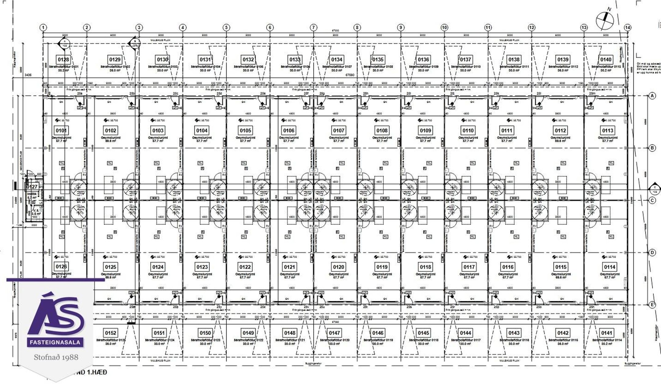- Lofthæð frá útvegg 6m til 8,5m við mæni.